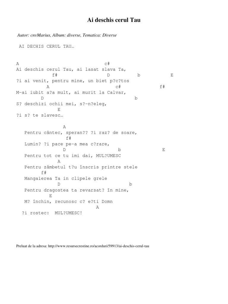 Ai Deschis Cerul Tau Autor Cnvmarius Album Diverse Tematica Diverse