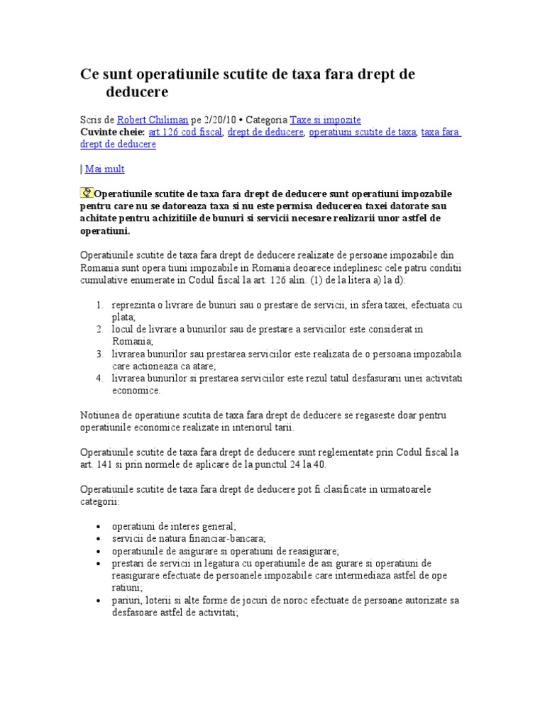 Ce Sunt Operatiunile Scutite De Taxa Fara Drept De Deducere