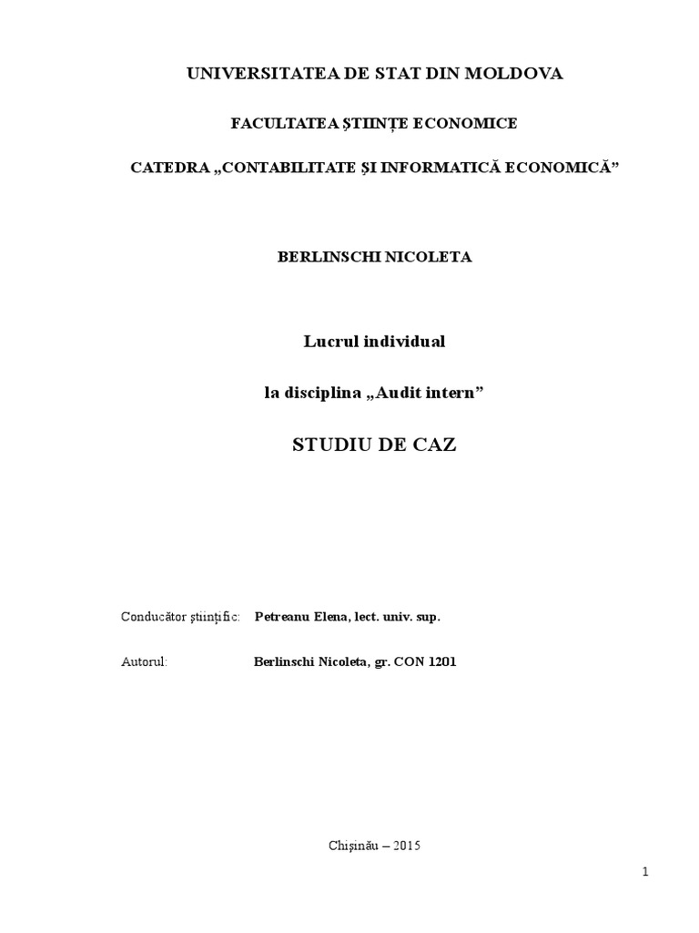 Proiect Studiu De Caz Privind Derularea Activitatii De Audit Intern Verificarea Operatiunilor De Incasari Si Plati La Institutia De Credit Lgw Bank Contabilitate 250727