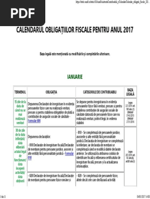 Calendar Fiscal Lista Obligaţiilor Fiscale Pe Luna Decembrie 2017