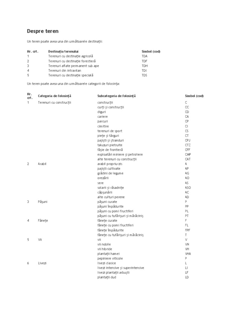 Cadastru Topo Lista Categorii De Folosinta A Terenurilor