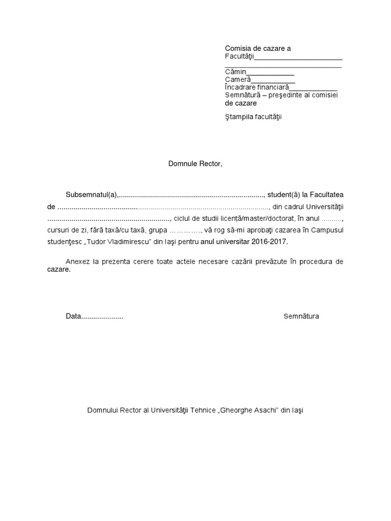 Cerere Cazare Studenti Pdf