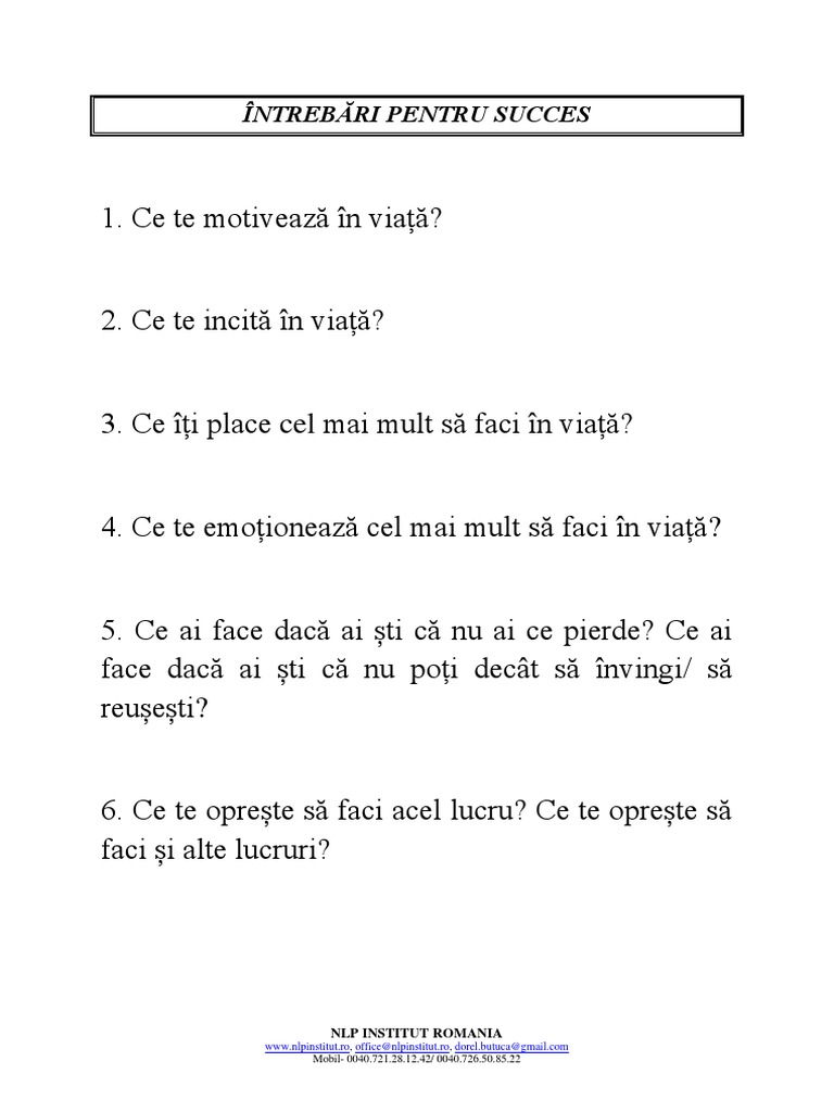 Intrebări Pentru Succes Nlp Institut Romania
