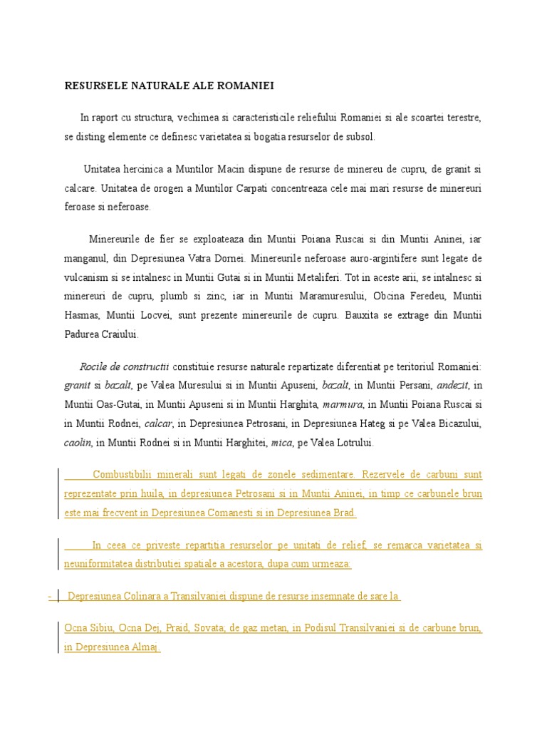 Resursele Naturale Ale Romaniei Docx