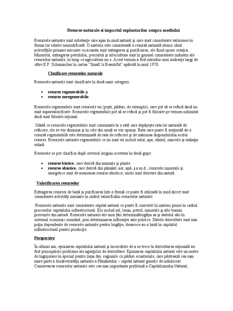 Resurse Naturale Si Impactul Exploatarilor Asupra Mediului