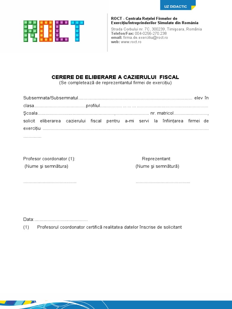 Cerere Eliberare Cazier Fiscal Fe