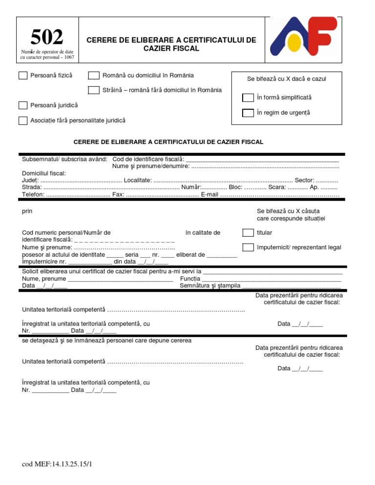 502 Cerere Eliberare Cazier Fiscal My Cms