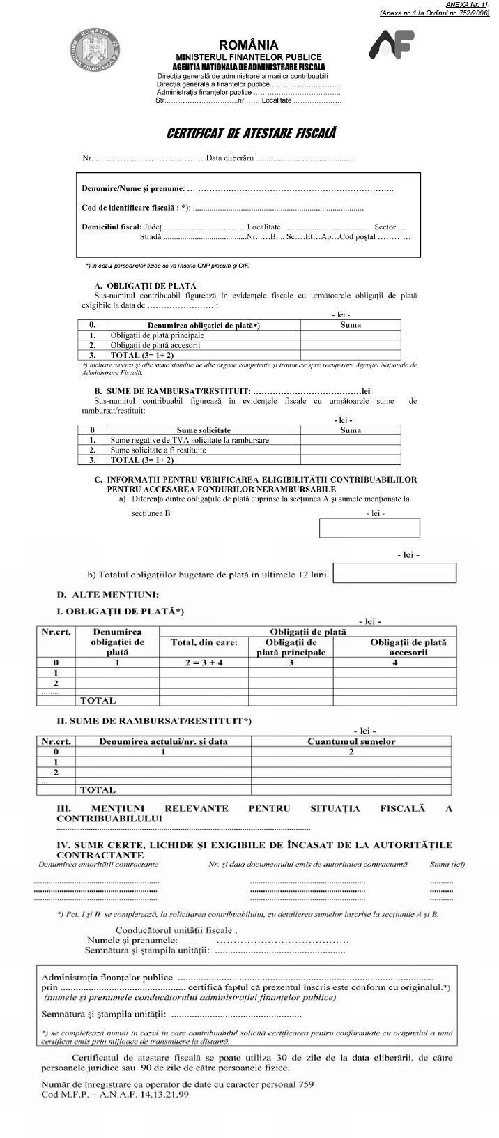 Certificat De Atestare Fiscală Ordin 2014 2011 Lege5 Ro