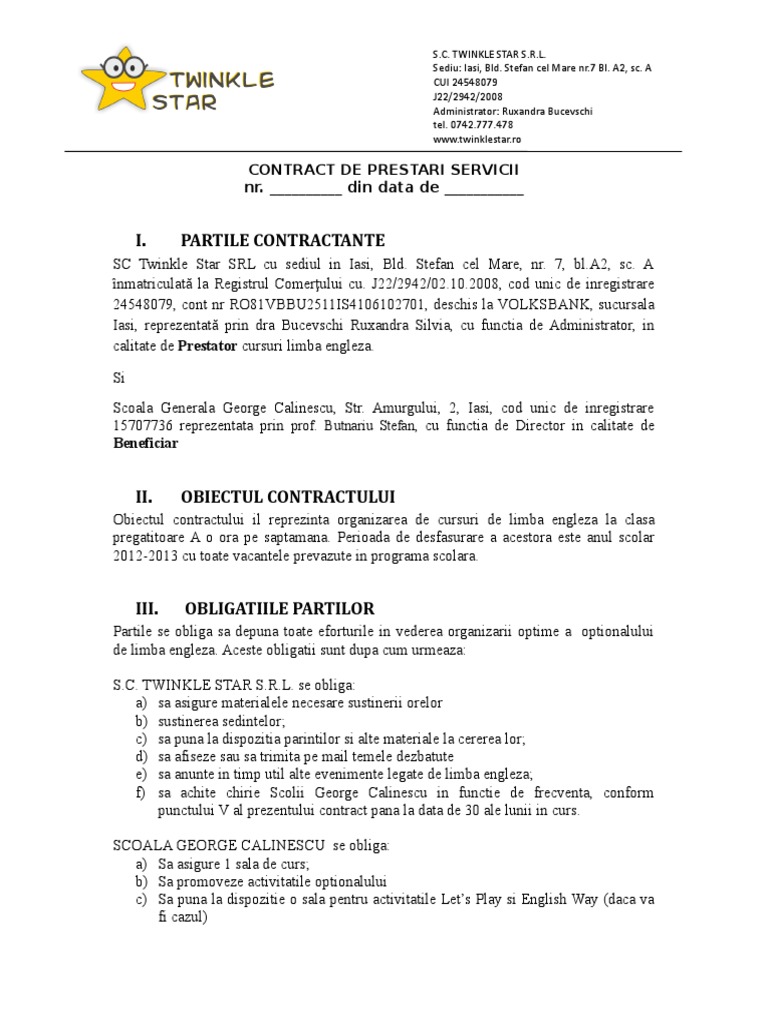 Contract De Prestari Servicii G Calinescu