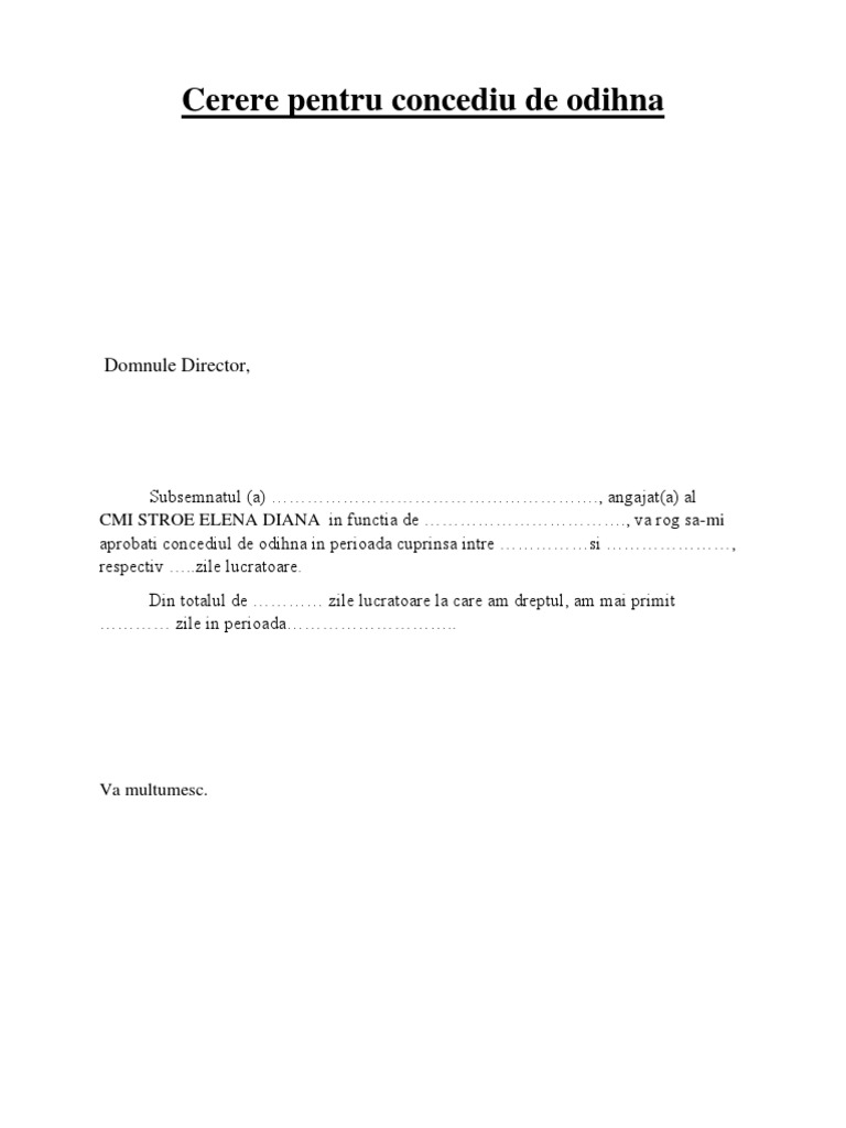 Cerere Pentru Concediu De Odihna 2018