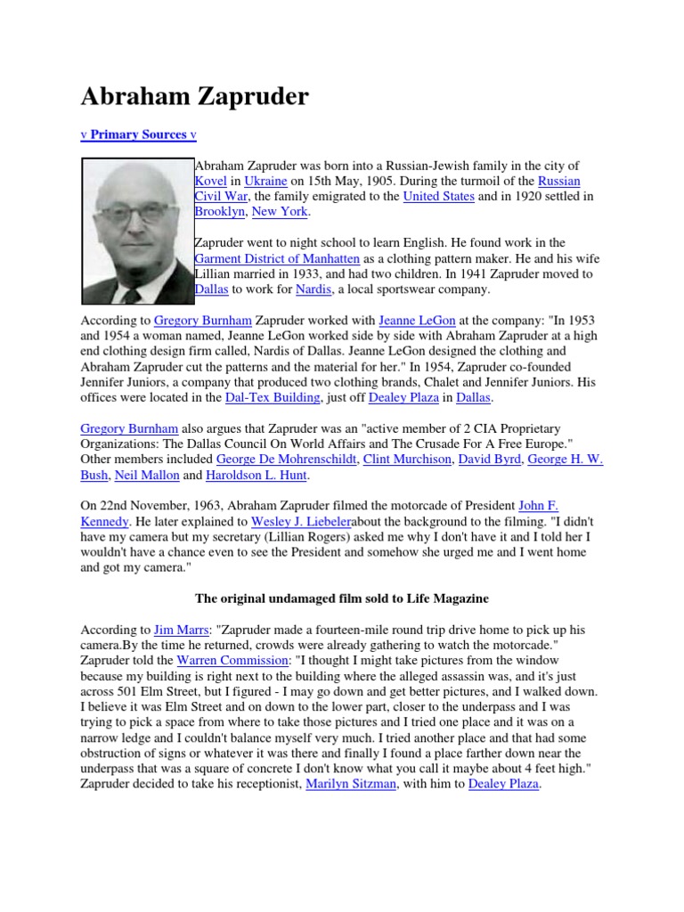 Abraham Zapruder John F Kennedy Assassination Of John F Kennedy