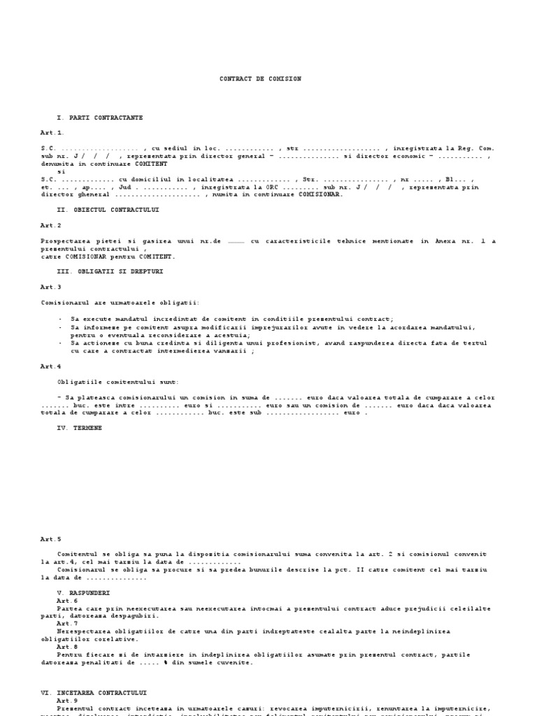 7 3 Contract De Comision Doc Contract De Comision I Partile Contractante Art 1 In Calitate De Comitent Pe De O Parte Si U2026 U2026 U2026 U2026 In Calitate De Course Hero