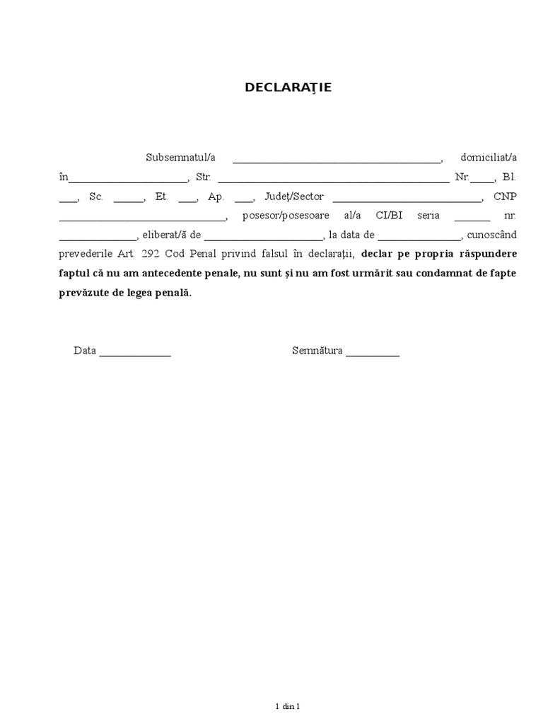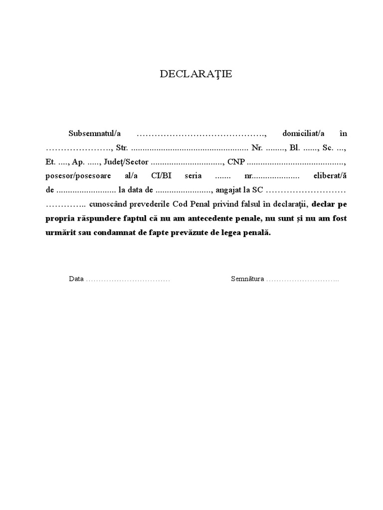 Declaraţie Pe Propria Răspundere Că Nu Are Antecedente Penale