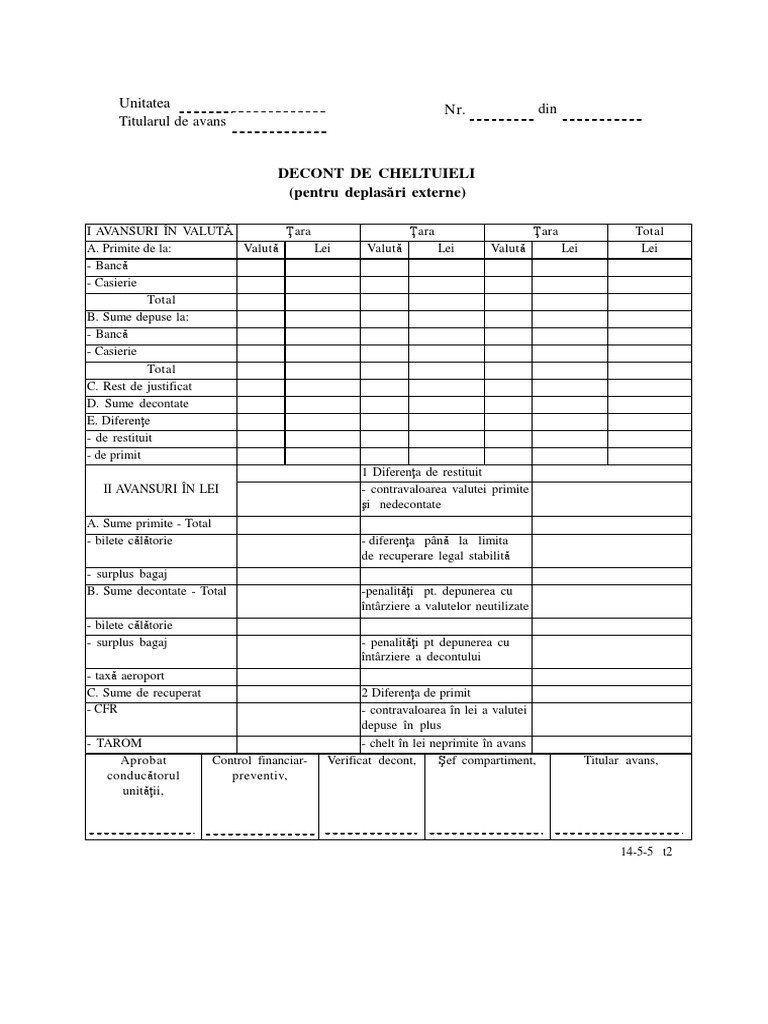 Decont De Cheltuieli Pentru Deplasari Externe Cod 14 5 5