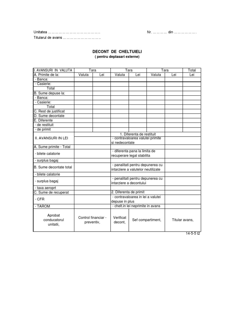 Decont De Cheltuieli Valutare 14 5 5 A