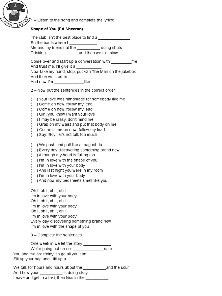 Worksheet Listening Ed Sheeran Shape Of You Leisure
