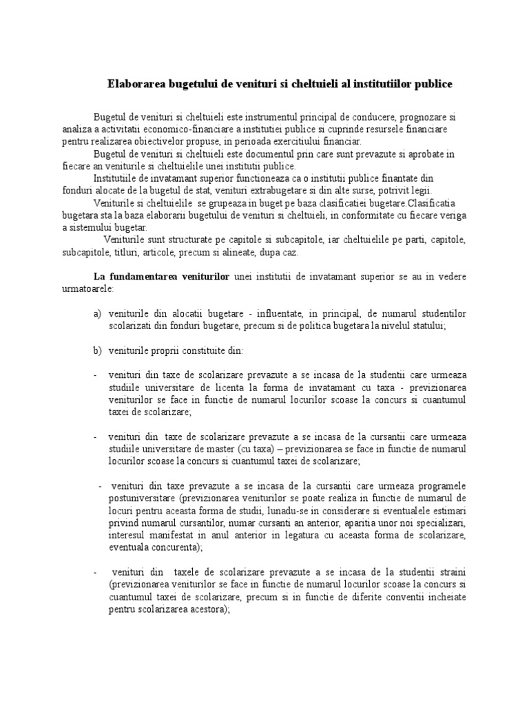 Fundamentarea Bugetului De Venituri Si Cheltuieli Al Unei Institutii Publice