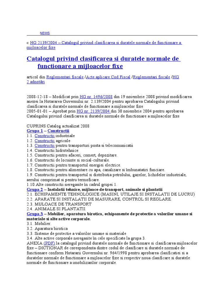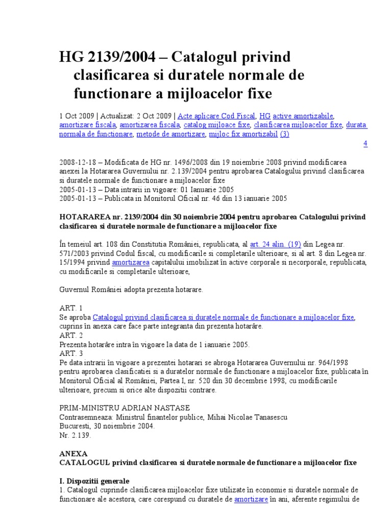 Hg 2139 2004 Catalogul Privind Clasificarea Si Duratele Normale De Functionare A Mijloacelor Fixe Cfnet Codfiscal Net Finante Taxe