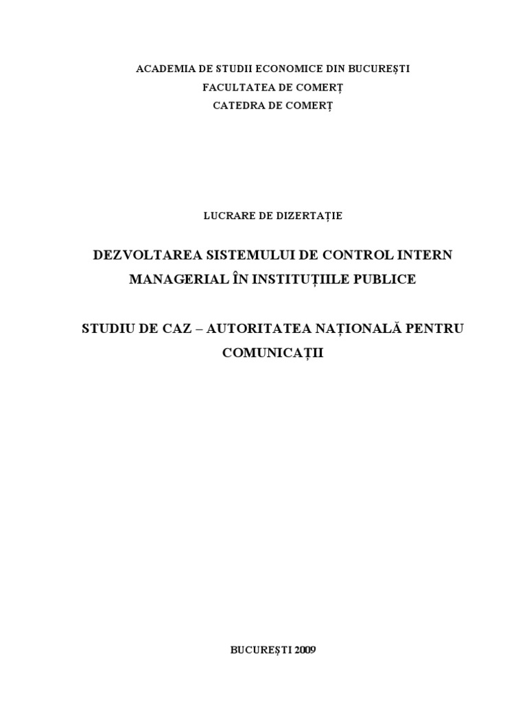 Dezvoltarea Sistemului De Control Intern Managerial In Instituţiile Publice