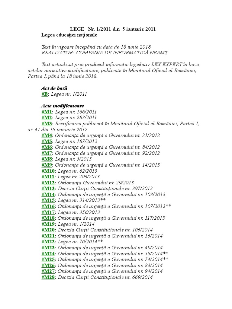 Legea Educatiei Nationale 1 2011 Actualizata 2017