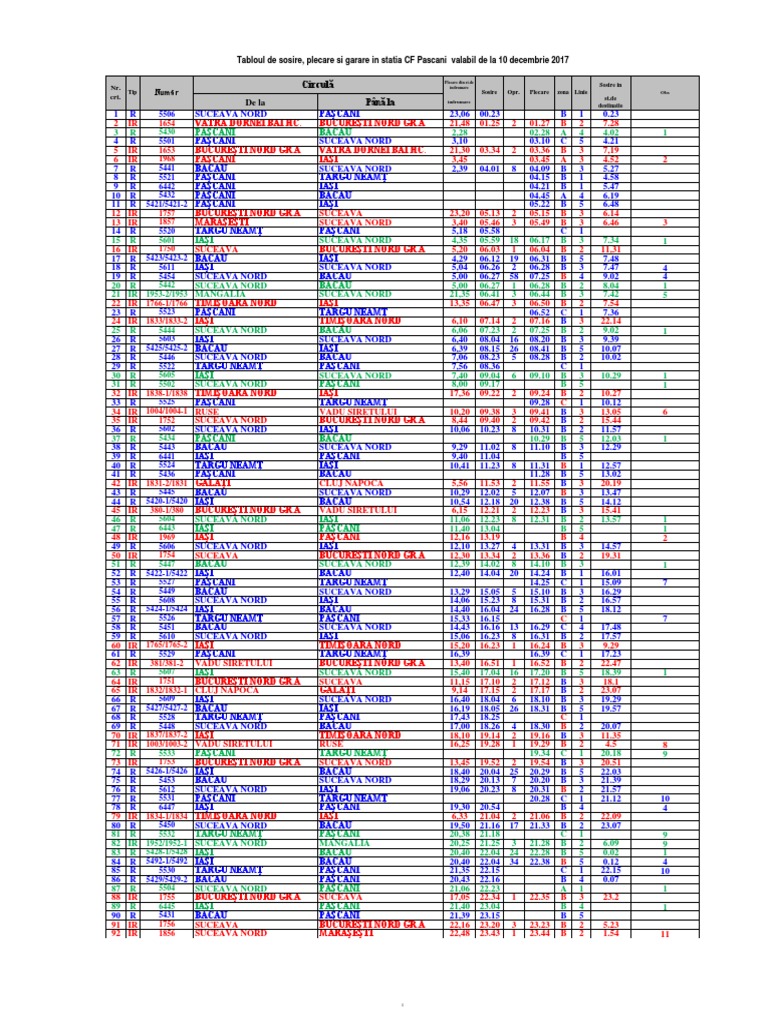 Mersul Trenurilod Din Gara Pascani De La Data De 10 Decembrie 2017