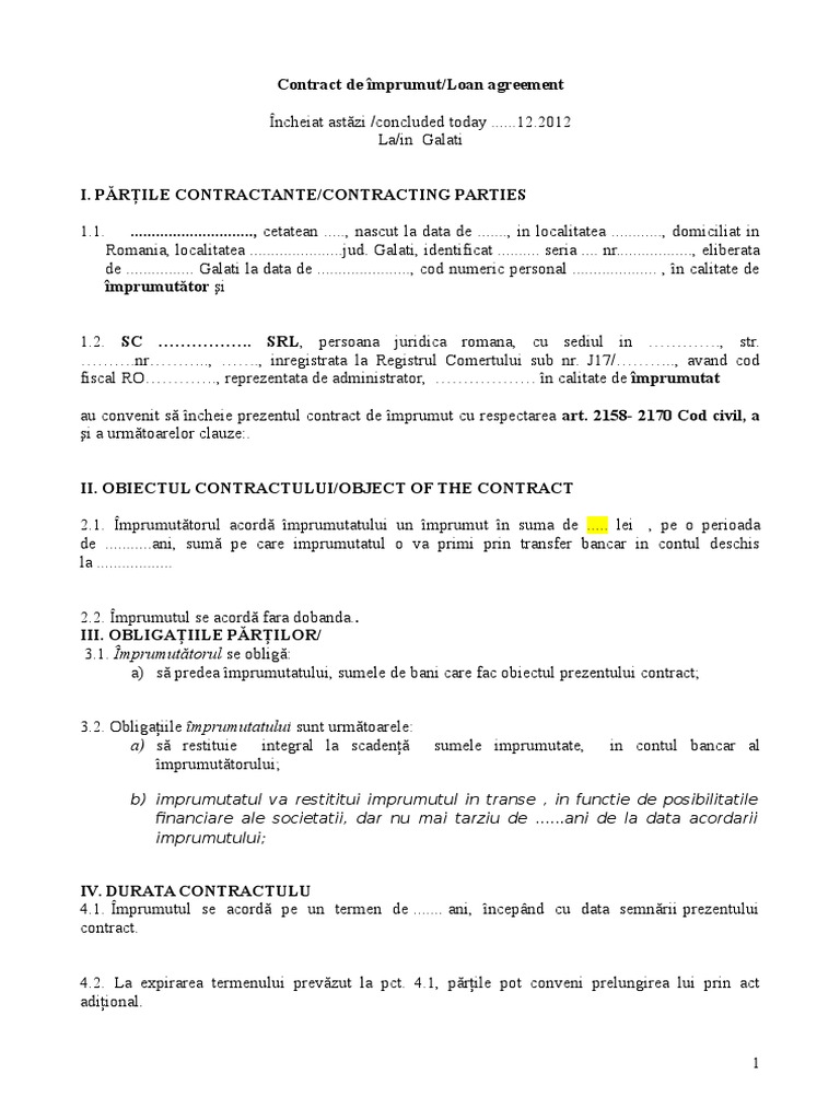 Model Contract De Comodat Locuinta Laurentiu Mihai