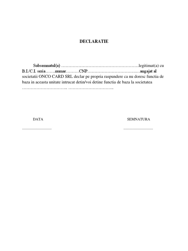 Declaratie Proprie Raspundere Functie De Baza