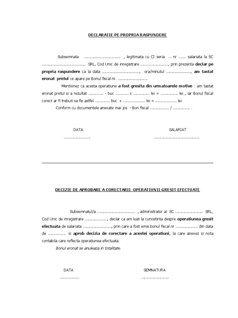 Proces Verbal De Anulare Bon Fiscal Gresit
