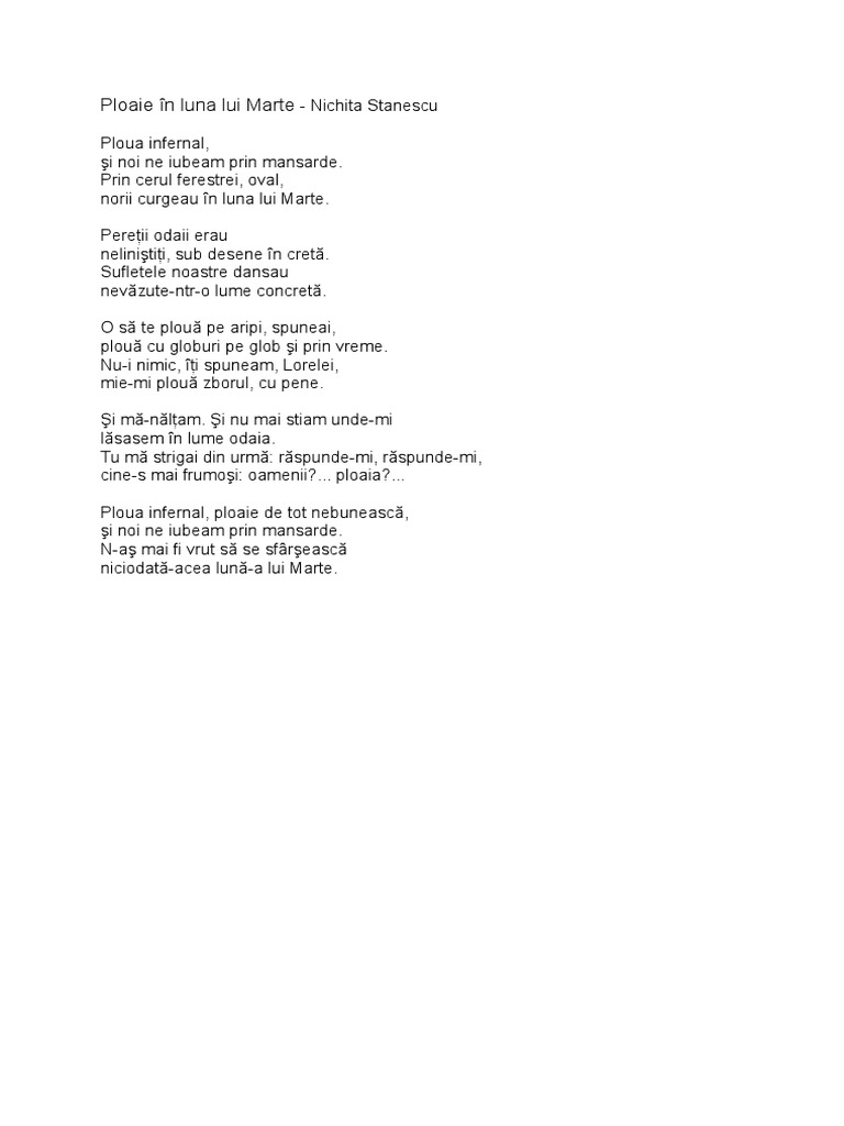 Nichita Stanescu Ploaie In Luna Lui Marte Pushtimea