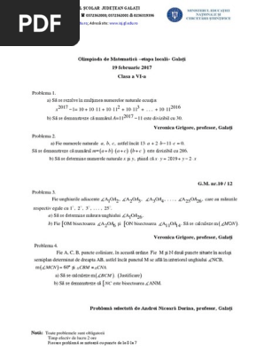 Olimpiada De Matematică Galati 2017 Vi Subiecte