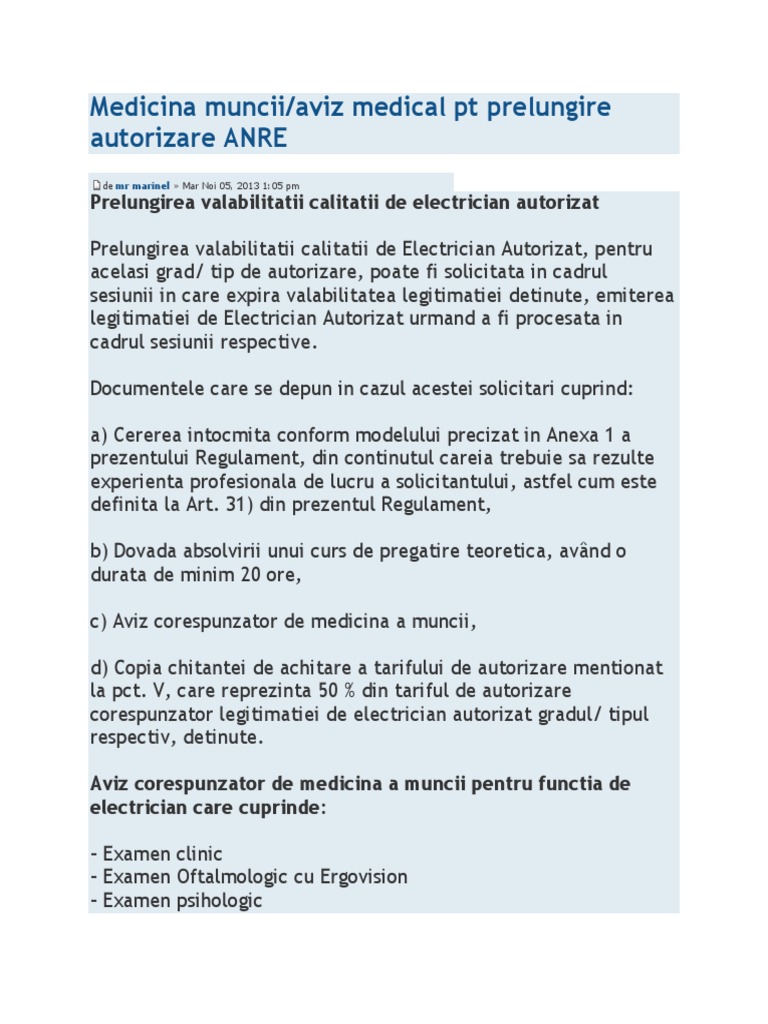 Prelungire Autorizatie Anre Electricieni