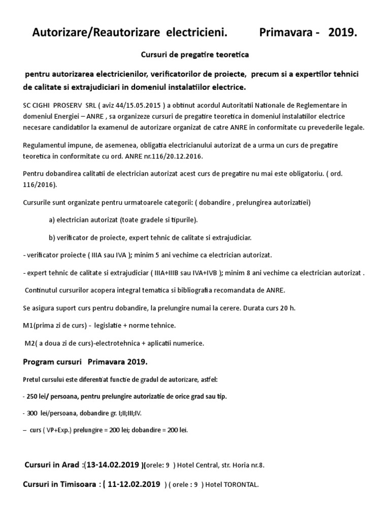 A0 Cursuri Autorizare Electricieni Primavara 2019 1