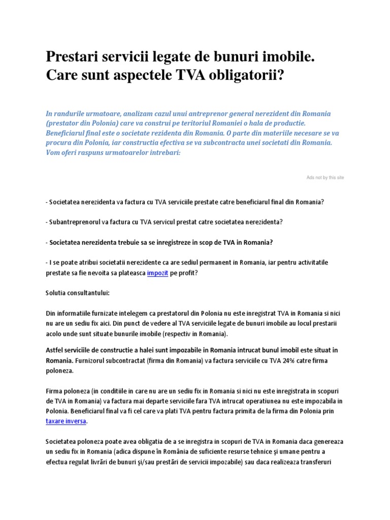Prestari Servicii Intracomunitare Pe Teritoriul Romaniei