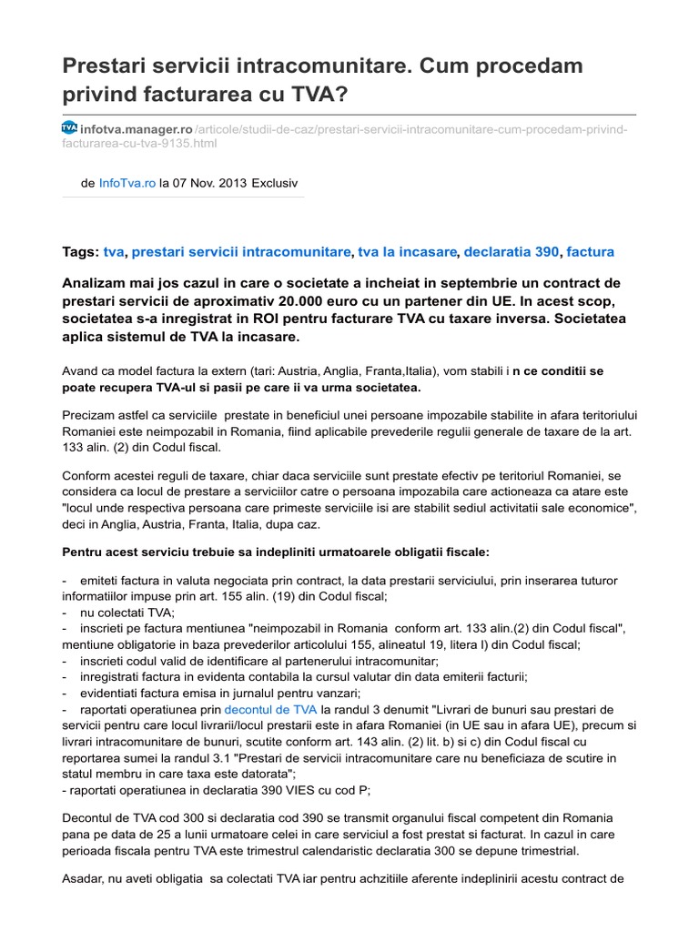 Infotva Manager Ro Prestari Servicii Intracomunitare Cum Procedam Privind Facturarea Cu Tva