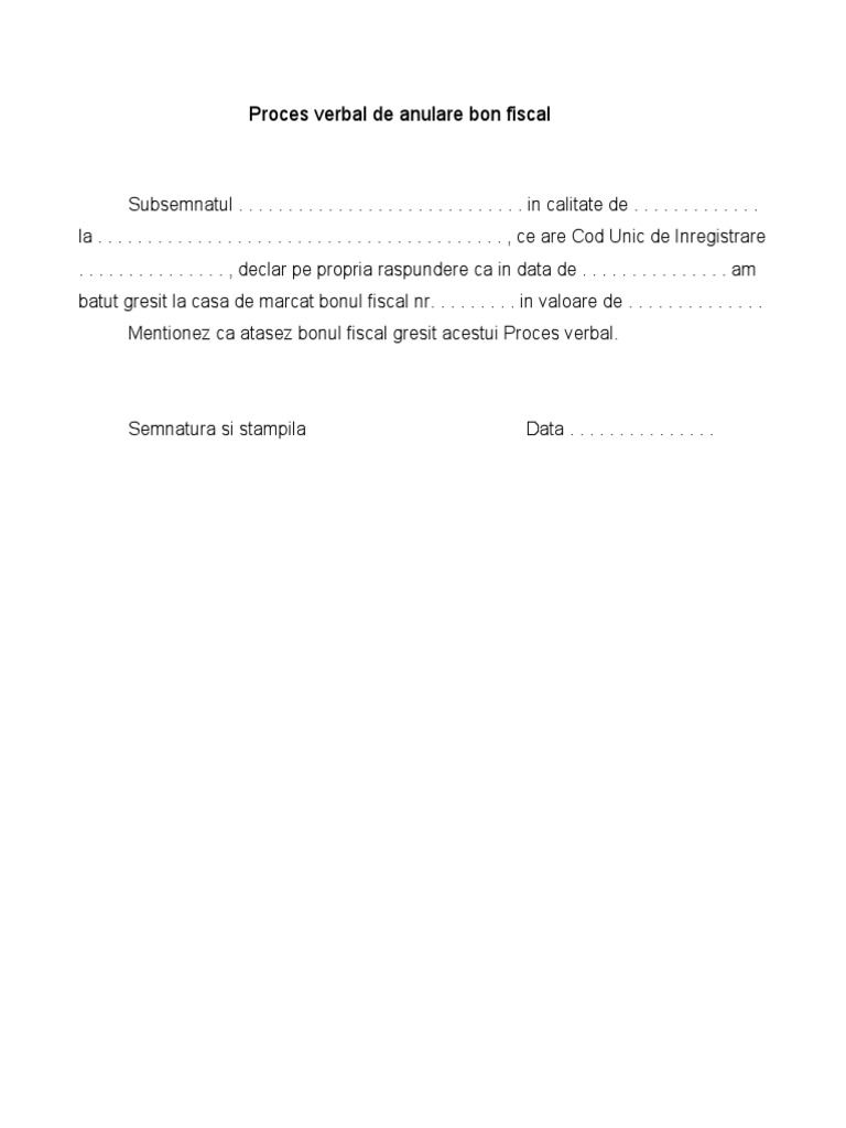 Proces Verbal De Anulare Bon Fiscal Gresit
