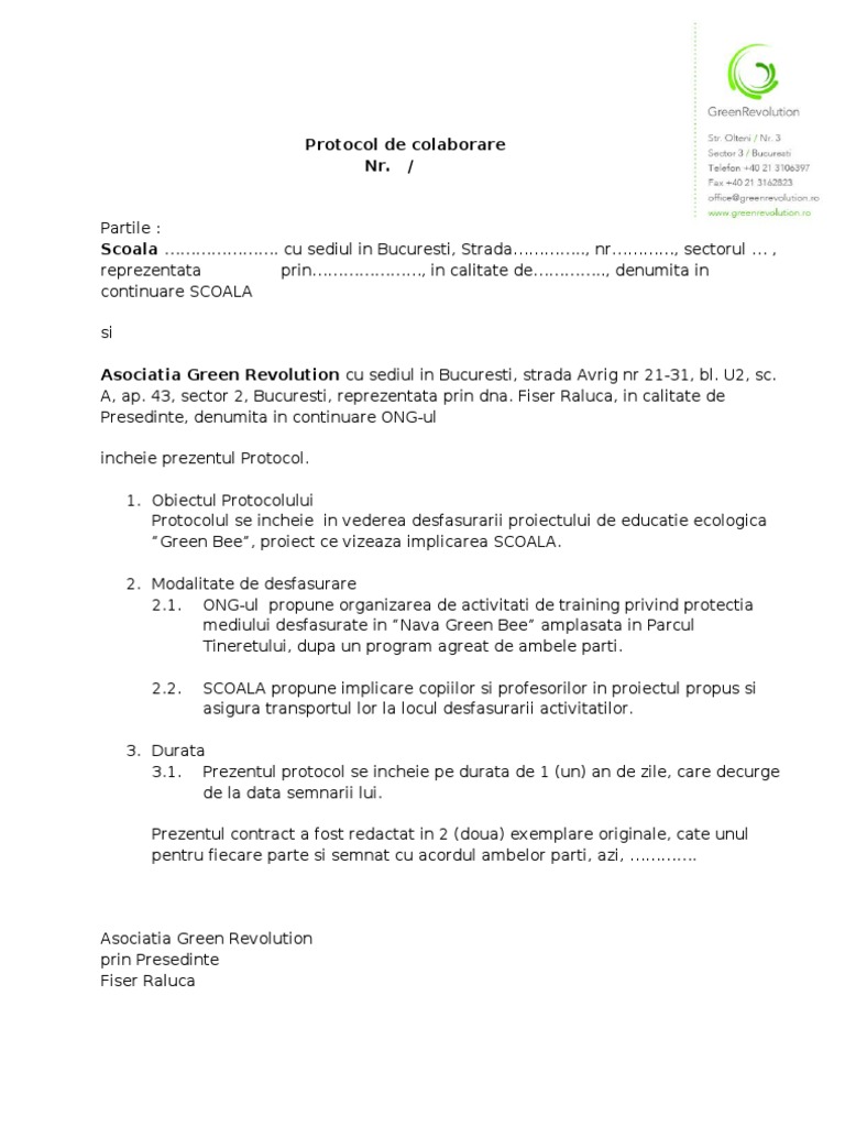 Protocol De Colaborare Intre Scoli Model