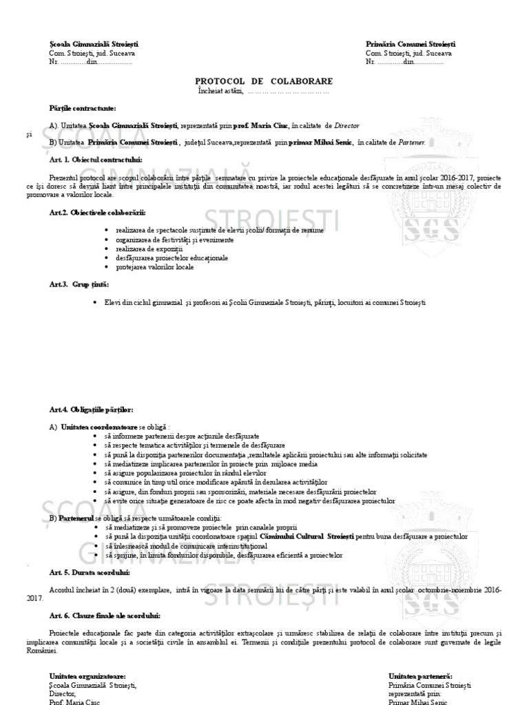 Protocol De Colaborare Intre Scoala Si Primarie Model