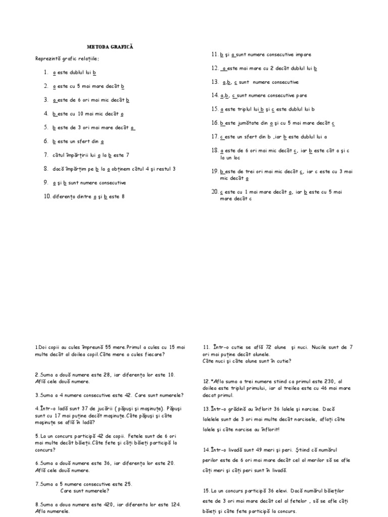 Proparinti Metoda Figurativa Metoda Grafica Metoda Segmentelor Tipuri De Probleme Rezolvate