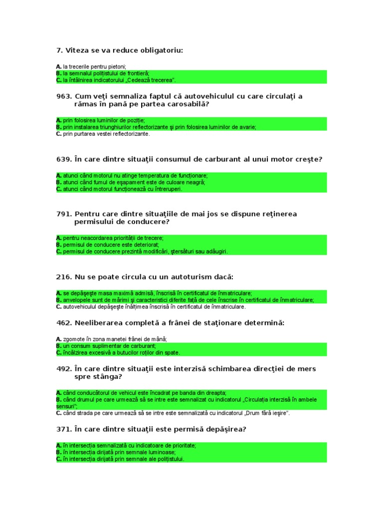 Intrebarea Cu Numarul 1 Din Setul De Intrebari Posibile Pentru Chestionarele Auto De La Examenul Drpciv Docshare Tips